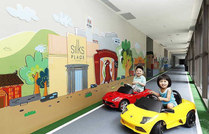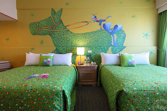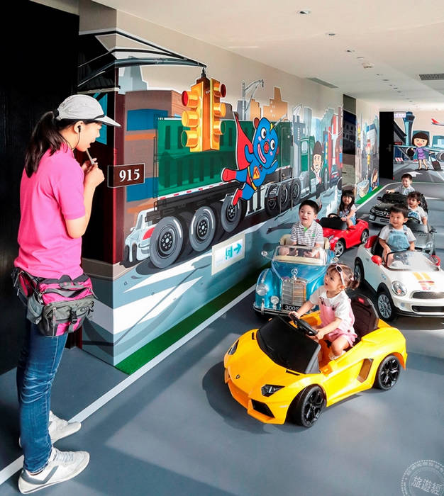 Silks Place Yilan is one of the famous family hotel in Taiwan, it took cars as theme to create a "car hotel for kids", with Fantasy Castle theme facilities for children on floor 8 and 9. It takes additional 1650 dollars to check in. Each room is equipped with children's equipments, tents and a branded electric car. The corridors are paved like racing tracks with traffic signs attached, providing a good opportunity for children to learn how to drive and follow traffic rules. Walls on floor 8 took street views from around the world as theme, providing children an experience traveling around the world with branded cars; on the floor 9 it's themed like worlds in movies, the mascots from the Fantasy Castle transformed into movie protagonists, making appearances scene by scene.
