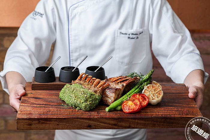 此次全新加入的紐西蘭犢牛帶骨牛排,是天然放牧純草飼、月齡不滿12月的小犢牛,由於飼養時間短且牛隻活動量少,適合喜歡肉質柔軟細嫩口感的饕客,主廚僅以鹽和胡椒簡練調味,放上烤架直火炭烤,展現原汁原味的鮮甜。另一款烹調方式則是使用法國傳統料理—吉列羊排的作法,將直火炭烤至三分熟的粉嫩帶骨犢牛排塗抹上第戎芥末醬、沾上以巴西里、迷迭香、百里香及麵包丁製成的香料麵包粉,再置於烤箱內反覆靜置烘烤,待香料和油脂完美融合成酥脆表皮即成,骨邊肉的焦香與軟嫩的肉質,搭配上鹹香帶顆粒感的調味,每一口都充滿著驚喜。「16盎司紐西蘭犢牛帶骨牛排 Veal Bone-in Steak」雙人套餐品饗價為6,680元,套餐同時包含雙人湯品、鮮蔬沙拉吧及繽紛甜點吧。