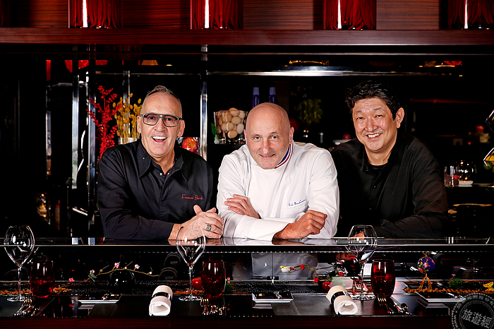 全球主廚指導Mr.Eric BOUCHENOIRE、主廚指導Mr.Tomonori DANZAKI、甜點總主廚Mr. Francois BENOT (圖:侯布雄法式餐廳提供)